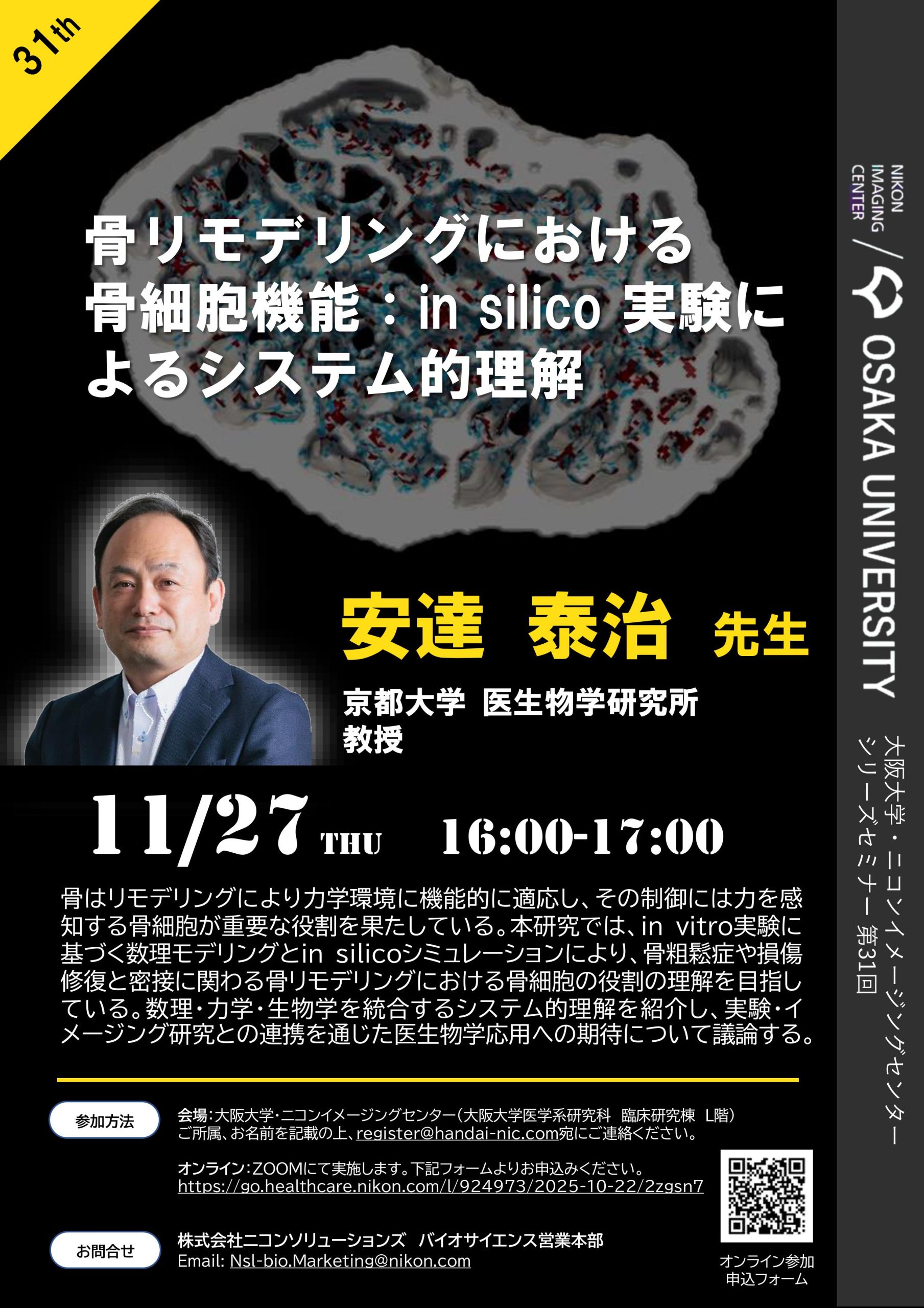 2025年11月27日シリーズセミナー 第31回 「骨リモデリングにおける骨細胞機能:in silico 実験によるシステム的理解」 - お知らせ