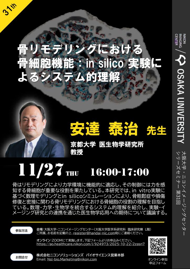 2025年11月27日シリーズセミナー 第31回 「骨リモデリングにおける骨細胞機能:in silico 実験によるシステム的理解」